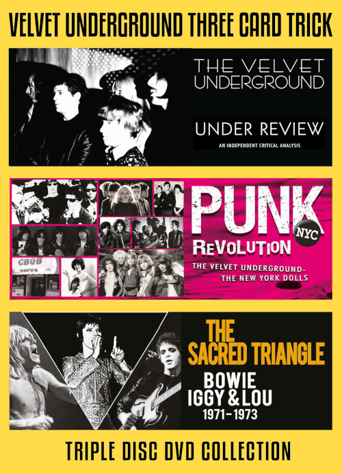 | Beskrivning | 3 DVD Box om The Velvet Underground och dess medlemmar, som enligt musikkritikern Lester Bangs startade all modern rock. Disc 1: The Velvet Underground - Under Review. Disc 2: The Punk Revolution NYC. Disc 3: The Sacred Triangle - Bowie, Iggy & Lou - 1971 - 1973. |